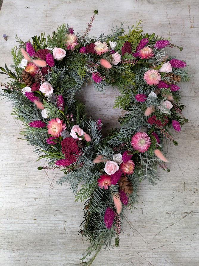 Das Musterfoto zeigt ein Herz mit einem Außendurchmesser von etwa 38 × 31 cm ist es vielseitig einsetzbar und passt wunderbar auf jedes Grab