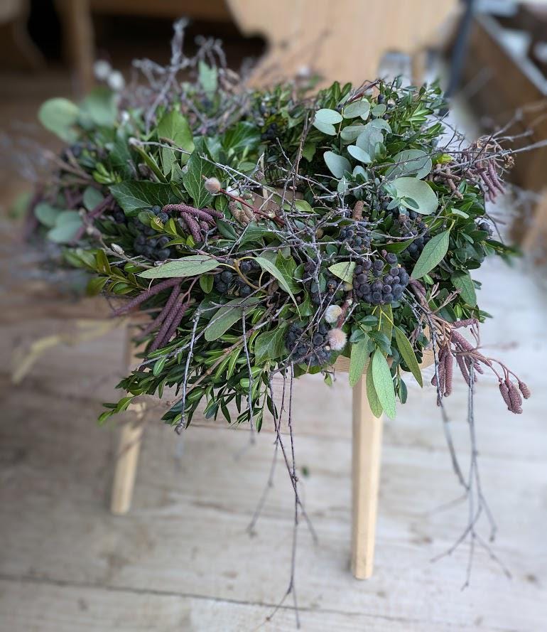 Verleihen Sie Ihrem Eingangsbereich oder Ihrem Tisch einen Hauch von natürlichem Charme – mit unserem handgefertigten Tür- und Tischkranz