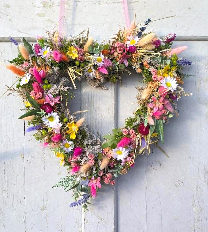 Material: Der Kranz besteht aus einer sorgfältigen Auswahl an Trockenblumen und künstlichen Blumen. Trockenblumen Verwendete Materialien Lagurus, Lavendel und Tatarica.