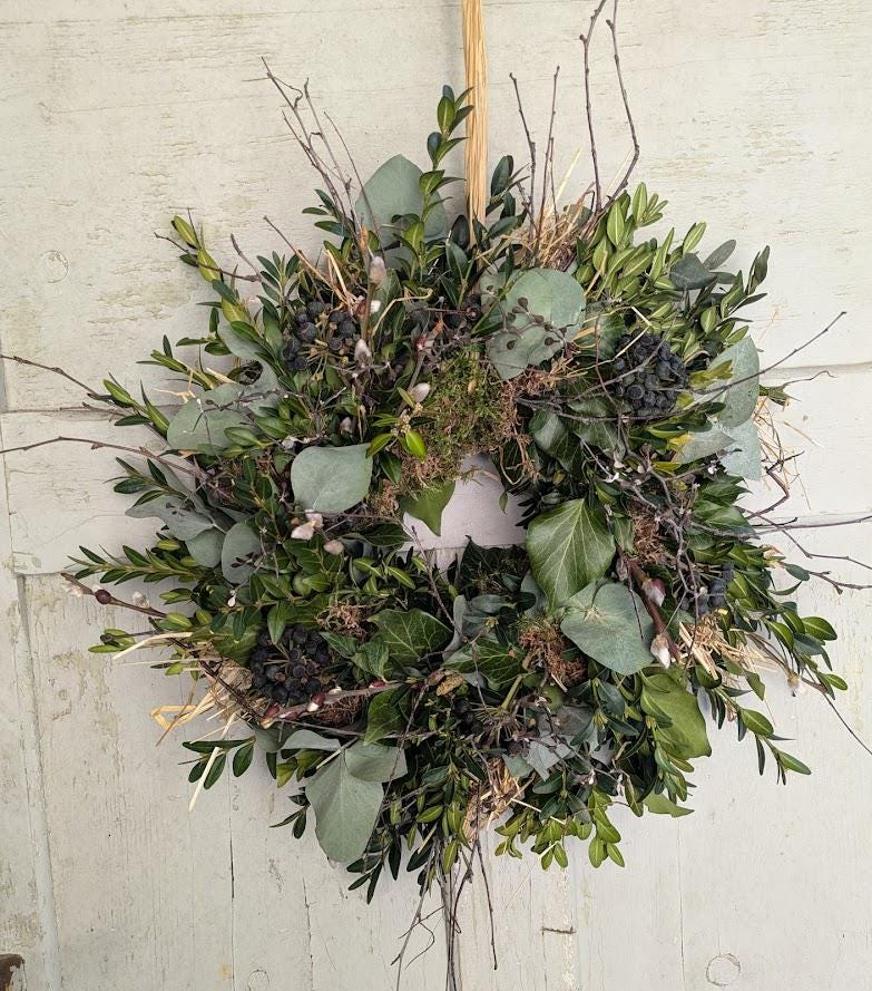 Verleihen Sie Ihrem Eingangsbereich oder Ihrem Tisch einen Hauch von natürlichem Charme – mit unserem handgefertigten Tür- und Tischkranz