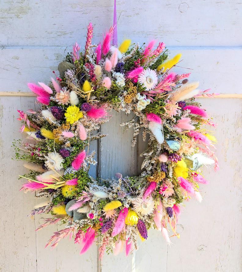 Entdecke unseren wunderschönen Trockenkranz, der sich vielseitig einsetzen lässt – ob als Türkranz, Wandkranz oder Tischkranz, er wird überall zum echten Hingucker.